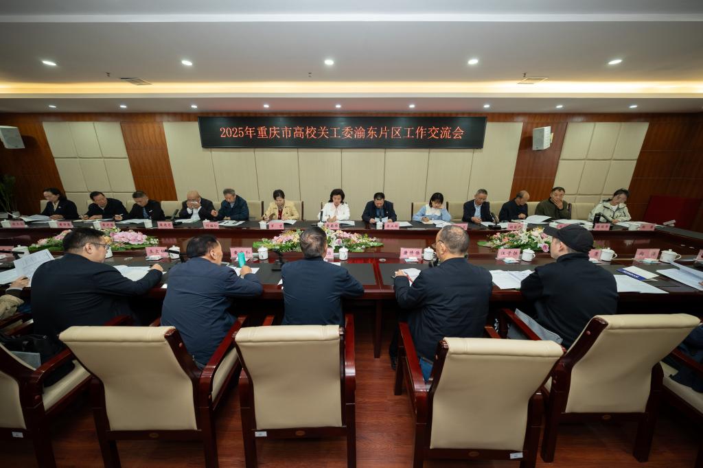 10月21日上午,2025年重庆市高校关工委渝东片区工作交流会在重庆工贸职业技术学院顺利召开。市教委关工委常务副主任董蜀华、市教委关工委副秘书长罗莹、市教委关工委办公室副主任黄正兰、重庆工贸职业技术学院党委书记唐玉林出席大会,渝东片区10所高校关工委代表共计20余人共聚一堂,共话育人使命。大会由重庆工贸职业技术学院工会主席蒋连忠主持。