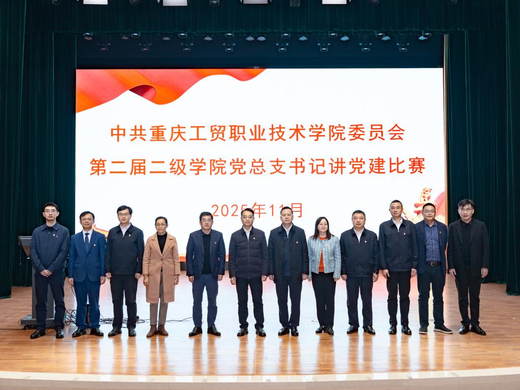 为贯彻新时代党的建设总要求,将“党建统领发展”贯穿办学治校、教书育人全过程,2025年11月14日,中共重庆工贸职业技术学院委员会举办第二届二级学院党总支书记讲党建比赛。长江师范学院教育学院党委书记杨伟,马克思主义学院党委副书记付亚云,学校党委委员、副校长赵小平,党委委员、纪委书记、三级高级监察官杨勇担任评委。