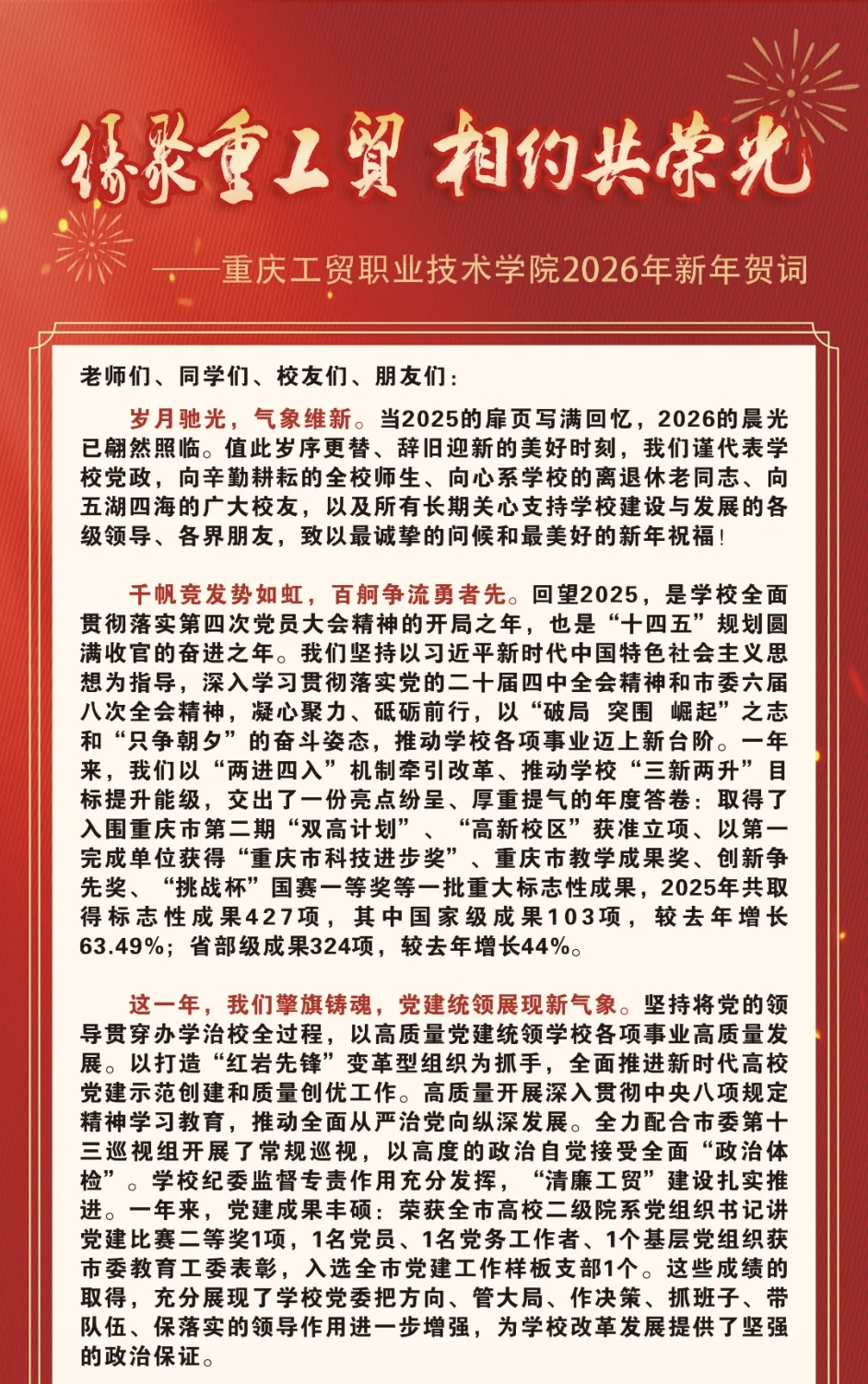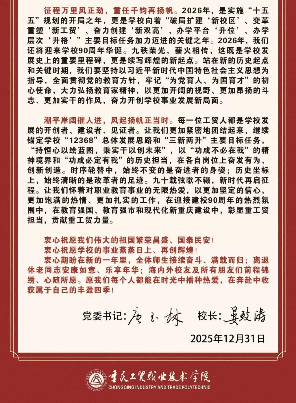 缘聚重工贸 相约共荣光——重庆工贸职业技术学院2026年新年贺词